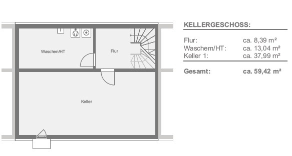 Das Haus ist voll unterkellert. Für Wäsche, Hauswirtschaft und anderweitige Gegenstände findet sich hier die ideale Abstellmöglichkeit.