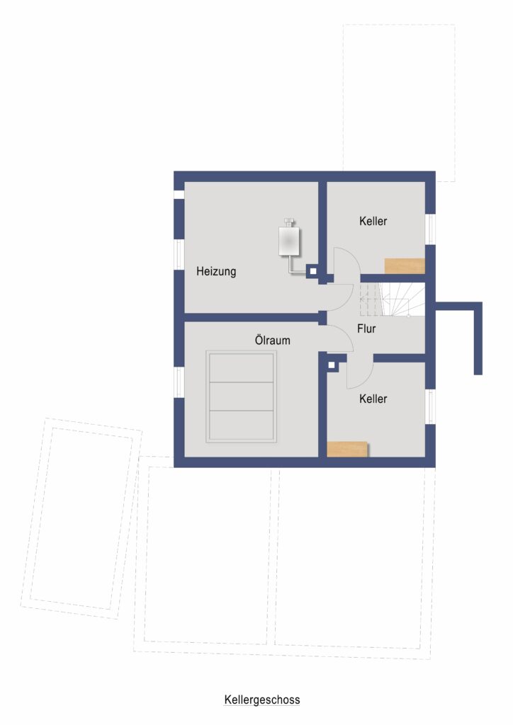 Das Gebäude ist teilunterkellert und bietet zusätzliche Nutz- und Abstellflächen. Die Kellerräume befinden sich ebenfalls in einem dem Baujahr entsprechenden Zustand.